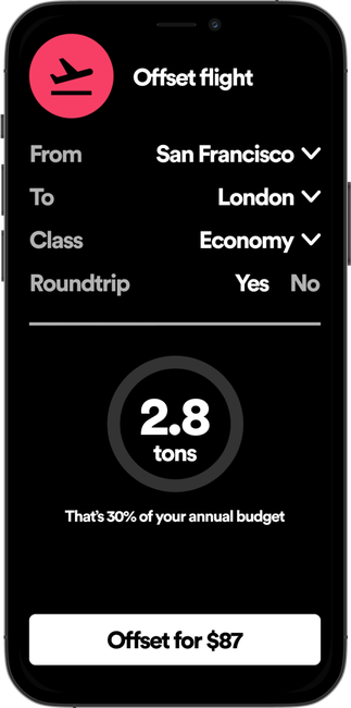 Through the app, you can buy carbon credits that support certified carbon capturing projects — offsetting what you can't reduce and making you carbon neutral.
